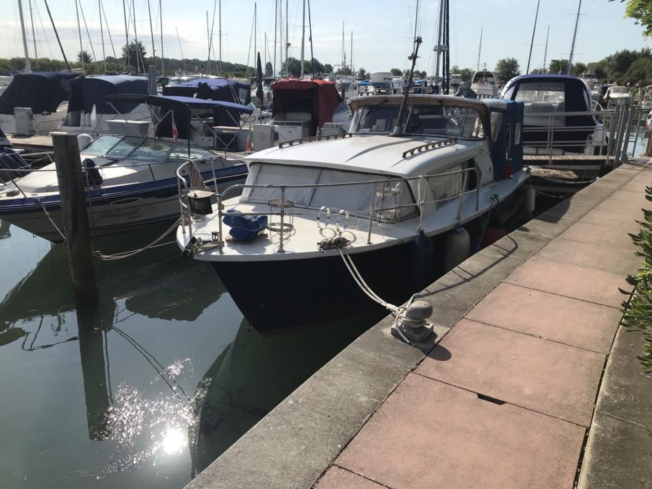 Verkaufe ein Bastlerboot Coronet 27 Baujahr 1965. 2x Volvo Penta mit 95 KW 130 PS. Beide Motoren laufen derzeit nicht, sollten aber, wenn man sich auskennt einfach zu reparieren sein. Einer lief schon, bekommt aber momentan keinen Benzin. Sonst läuft er. Länge 8,28 Breite 2,8ß Tiefgang 0,74. Bott hat einen ca. 400 Liter Kraftstofftank, einen Frischwassertank, Warmwasserboiler Boiler WC elektrisch (dzt. nicht angeschlossen). Am Boot muss noch einiges gemacht werden, daher wird es als Bastlerboot verkauft.