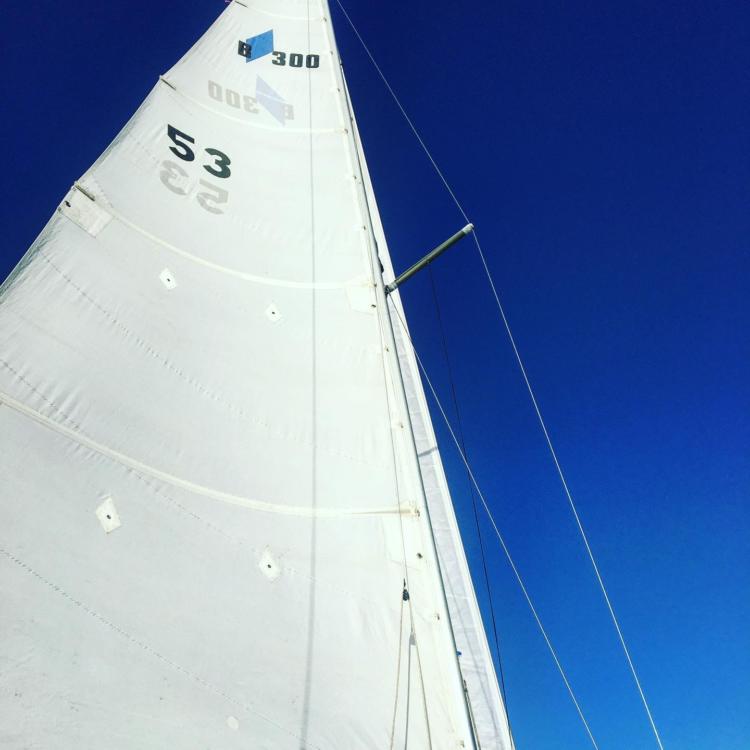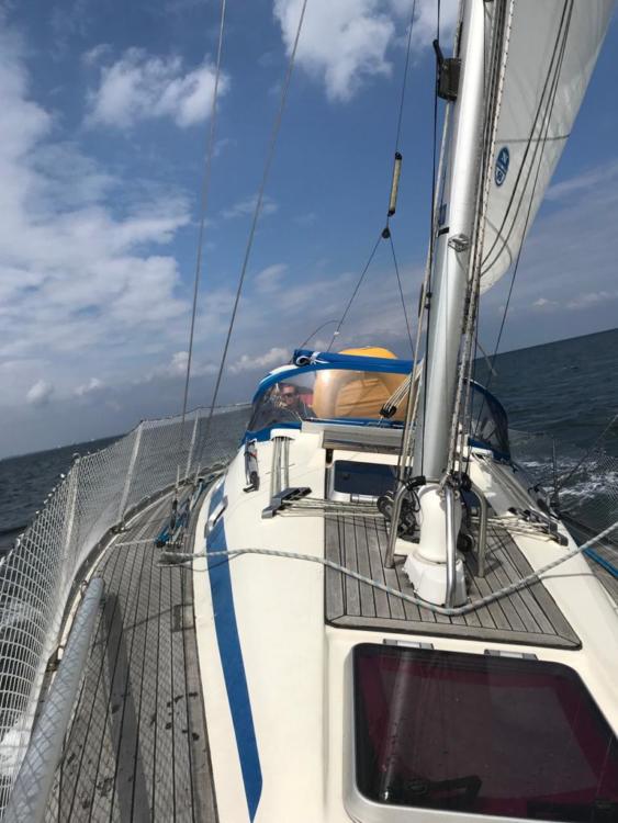 Die Segel sind noch super, ein Spi mit Bergeschlauch ist auch dabei.