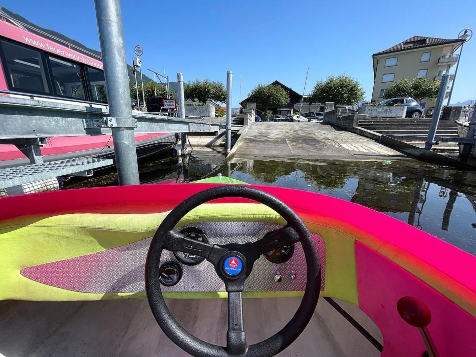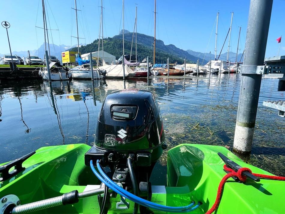 Frisch Vorgeführt mit neuwertigem 8 PS Suzuki-Motor. EU und Schweiz Zertifiziert als Wanderboot ( nur eine Parkplatzbescheinigung nötig)