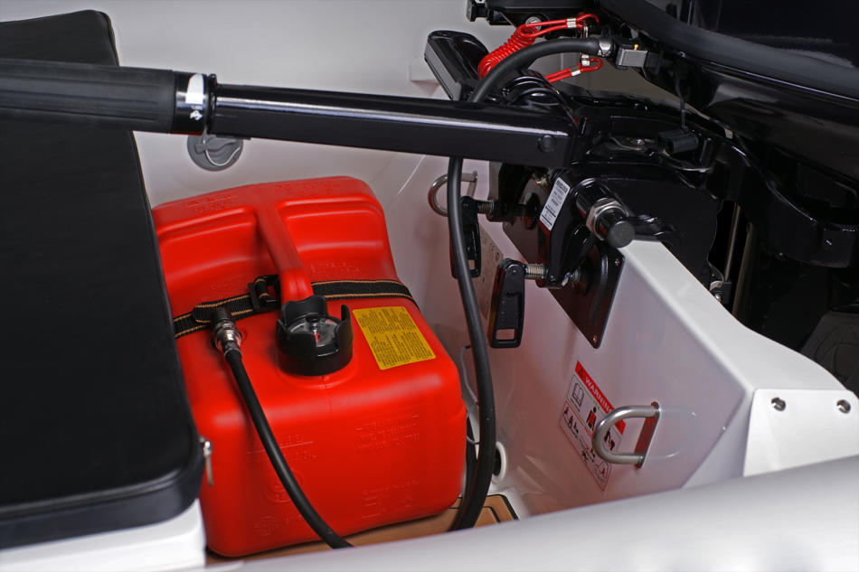 Motordaten: 4-Takt Außenborder, 9.9 PS / 7.3 kW, 2 Zyl. / 212 cm³, 40 kg, Handstart, Pinne, Normalschaft, V-N-R-Schaltung
