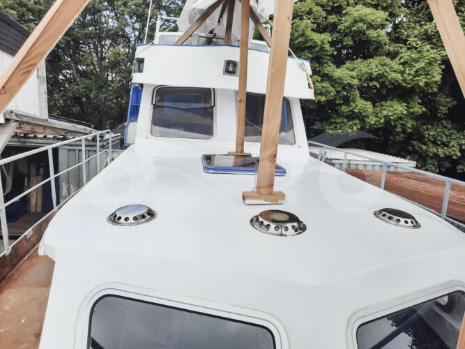 • Ausstattung: Küche, Bad mit Dusche & WC, Schlafzimmer, zwei Steuerstände, TV, Funk, 2× Radio, 2× 350L Edelstahl-Wassertanks, 350L Dieseltank u.v.m. Bereits erledigte Arbeiten: