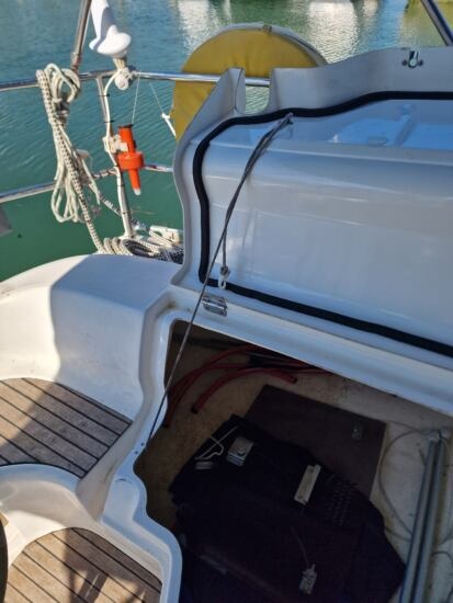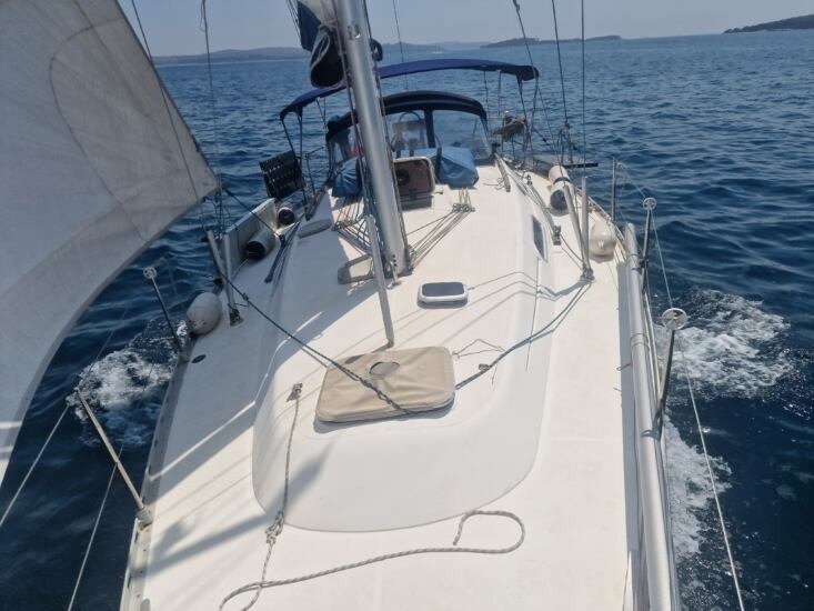 Der Zustand ist gepflegt, wobei einige Bereiche wie das Teak im Cockpit einer Wartung bedürfen. Die Yacht eignet sich sowohl für entspannte Törns als auch für ambitionierte Segelbedingungen.