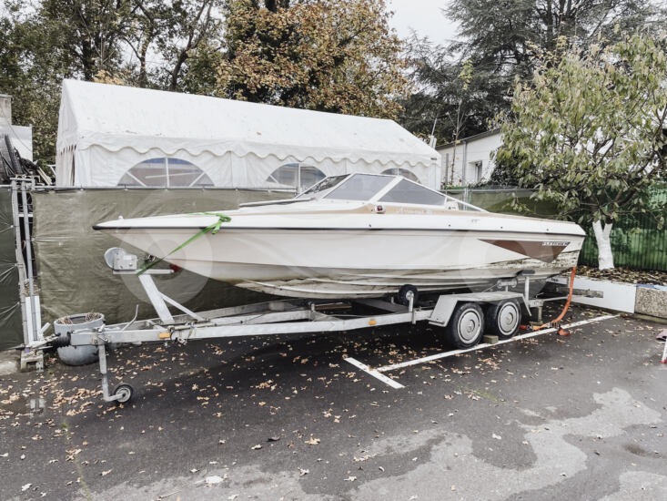 Daten: Länge: ca. 6,40 m, Breite: ca. 2,30 m, Gewicht: ca. 1.800 kg, Tiefgang: ca. 0,7 m, Motor: Ford Midland V8, 5.7L (281 PS), Antrieb: Innenborder mit Z-Antrieb, Zugelassen für 5 Personen, Manuell verstellbare Trimmklappen, 2 Starterbatterien (getrennt schaltbar), Bilgenpumpe, Positionsbeleuchtung, Echolot (12V), Radio mit Lautsprechern, Tablet-Halterung mit 12V Anschluss, Schlupfkajüte mit Liegefläche, Badeplattform (Holz), Wasserski-Öse, 2-Achs Trailer (gebremst) TÜV bis 08/2026, Zubehör Fender & Festmacherleinen, Anker mit Kette & Bleileine, Bootshaken, Persenning (wasserdicht)