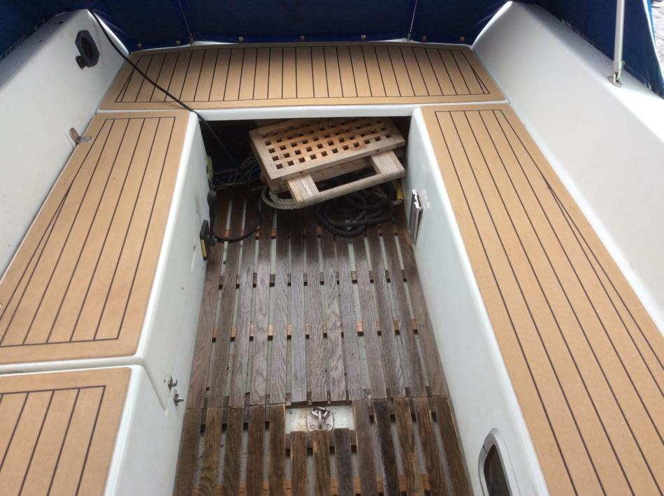Segel: 2xRollfock (Selbstwendefock/Furlex), Großsegel durchgelattet mit 3 Reffreihen, Spinnaker (nur 1x benutzt), Selden-Ausbaumer