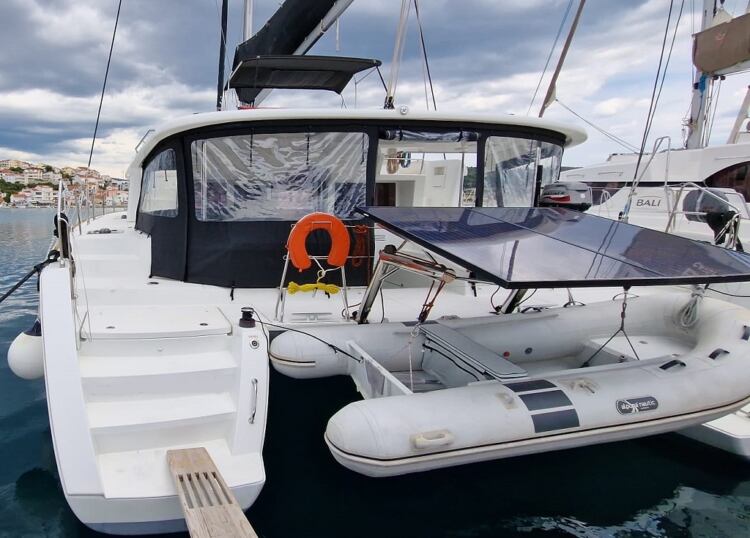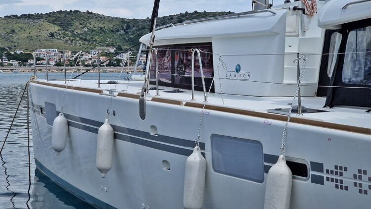 Lagoon 450F, das ist wohl der meist verkaufte Katamaran des bekannten Herstellers Lagoon. Verbringen Sie Ihren Urlaub auf dem Erfolgsmodell, an Bord derLagoon 450F mit Flybridge. Mit 4 Kabinen und 4 Nasszellen mit elektrischem WC, 2 Skipperkabinen und 2 Schlafmöglichkeiten im Salon bietet die Lagoon 450F (Flybridge) Platz für große Crews, die gemeinsam die Adria erkunden möchten. 2 Kühlschränke und ein Gefrierschrank sorgen auch dafür, dass der Proviant frisch und die Getränke kalt bleiben. Diese Lagoon 450F ist mit Solar ausgerüstet und produziert umweltfreundlich Strom für Ihre Annehmlichkeiten. Moderne Unterwasserbeleuchtung, Generator mit 7kW sowie Klima-Anlage in allen Kabinen und dem Salon, USB Ladebuchsen und ein 1200W Inverter vervollständigen die Ausstattung.