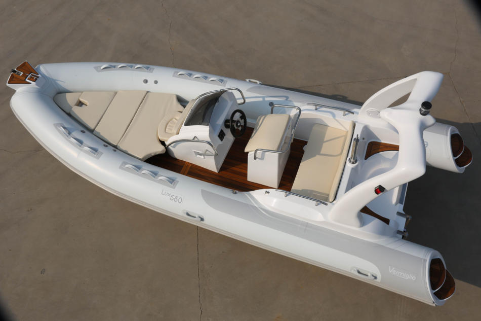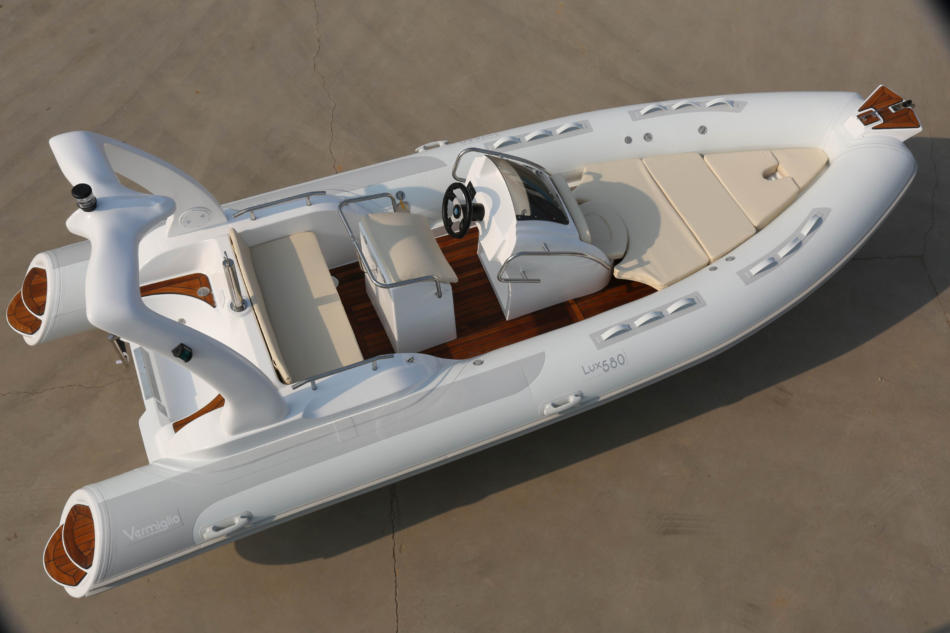 Bei dem Modell Lux 580 Rib handelt es sich um ein Neuboot in allerbester Verarbeitungsqualität. Die Farbe ist in Weiß/Beige gehalten. Es gibt eine umlaufende Scheuerleiste und eine komplette Gummileiste unter dem Rumpf, einen Bugtritt mit VA Festmacherklampe,