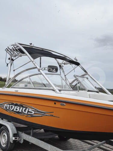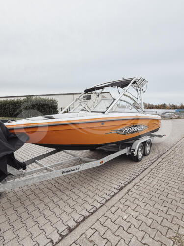 Zum Verkauf steht ein gepflegtes und leistungsstarkes Sportboot, ideal für Wasserski, Wakeboard und Wakesurf.
