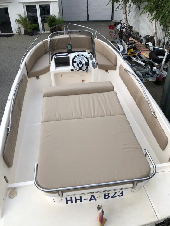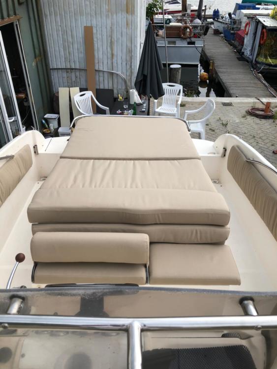 Neben großer Liegefläche mit neuen Postern verfügt das Boot über eine Sitzecke mit montierbaren Tisch.