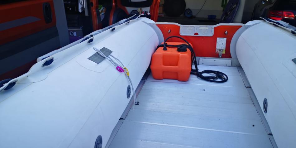 Boot incl Aluboden können mit wenigen Handgriffen ausgelassen, zerlegt und in zwei Packsäcken zum Transport platzsparend verstaut werden.