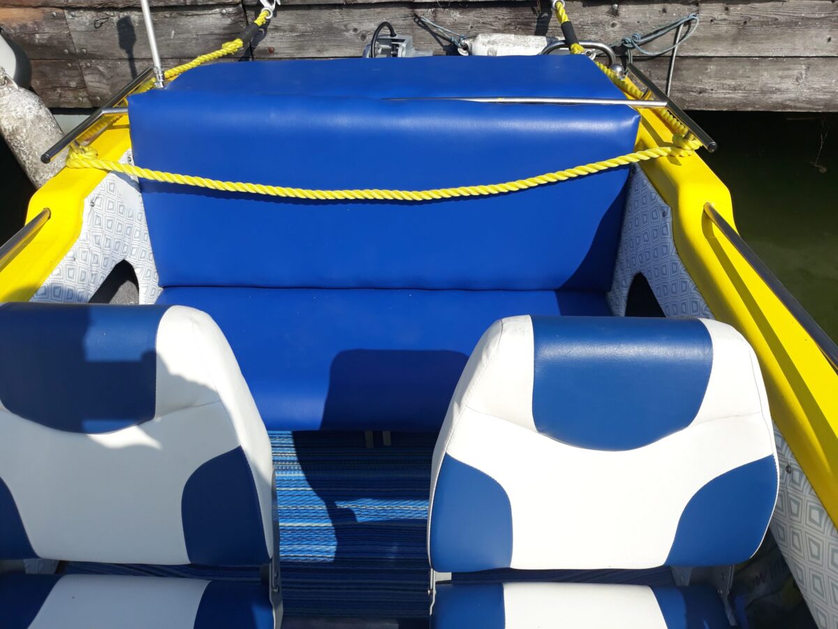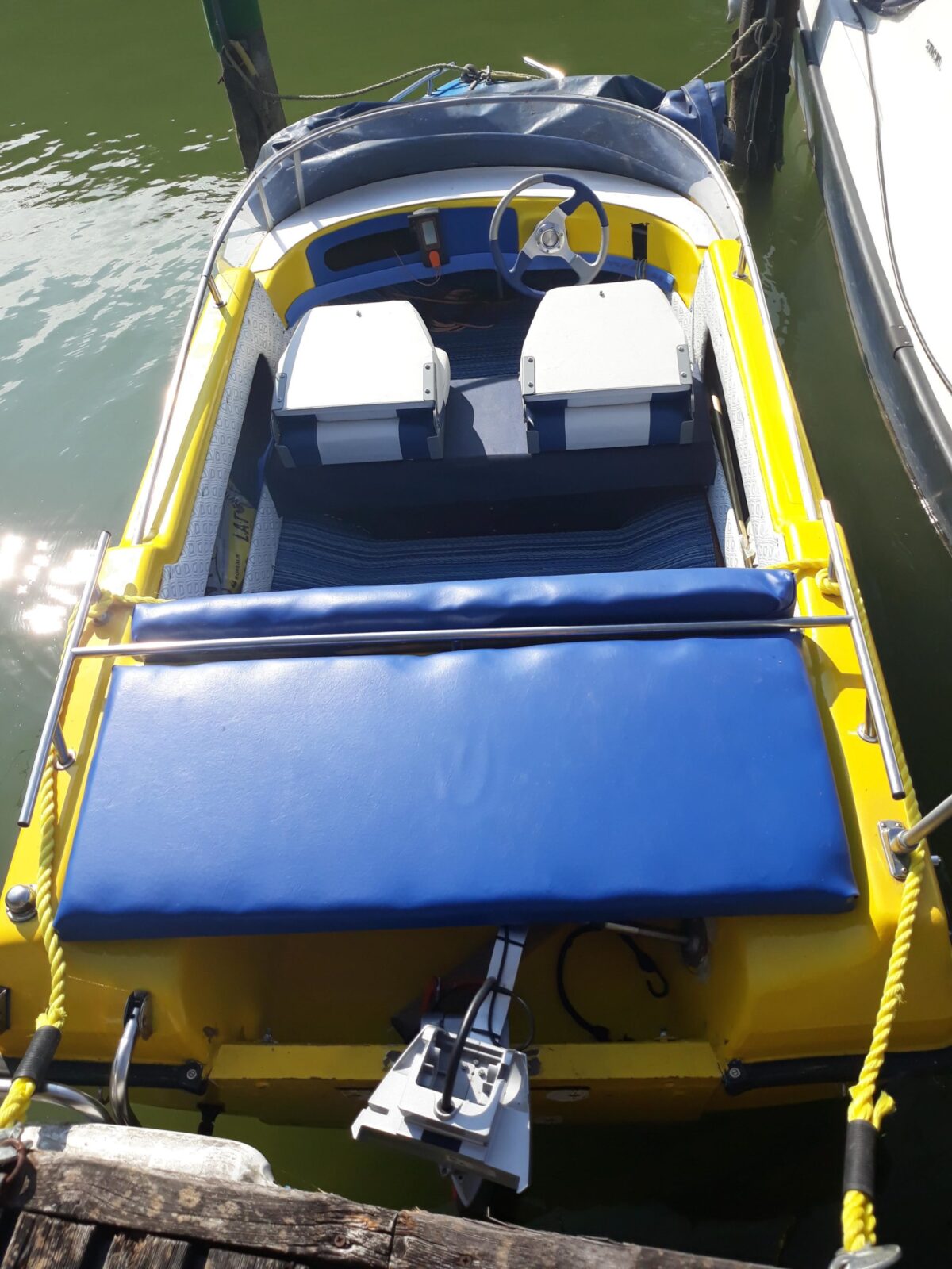 neue Sitze, neues Lenkrad. Badeleiter, Ankerlicht, Nachtbeleuchtung, Verchromte Reling. Zugehörig eine Kockpit Persenning und eine Winterpersenning über alles.