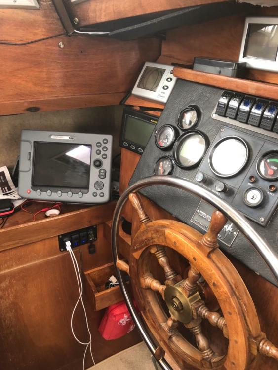 Ruder umschaltbar manuell und Hydraulisch ( innen und außen zu bedienen ) , 230V Spannungswandler 1500W , großer Kühlschrank 12V , 120l Frischwasser, 120l Dieseltank , Seetoilette , 3x Rauchmelder , 2x Gasmelder, 2x Funkgerät ( Festeinbau 25W sowie ICOM Handfunk mit GPS , Elektrik 230V und 12V komplett neu 2021 , überall LED Beleuchtung ( auch in den Schränken und natürlich auch alle Positionleuchten , Tiefenmesser , Sumlog , GPS Tacho , 2x Windmesser ( innen und Pflicht ) , 3 Segel 2x mal noch gut zu gebrauchen 1x Neuwertig ( Blister , Schwachwindsegel mit Hülle ) für Schwachwind . Motor 3 Zylinder Diesel In Bord Volvopenta MD17C 35 HP PS . 2 x Lenzpumpe 12V und Manuell , Standheizung Diesel 5kw Umluft , Internet Wlan mit Giga Router ( Telefon Karte ist nicht Bestandteil ) , AIS Radar Empfänger . Batteriemonitor und Managmentsystem , Manuelle Ankerwinch mit Kette , Pott und Pann , Besteck , Feuerlöscher , 6x Automatik Rettungswesten natürlich SECUMAR , Kochtöpfe , Wasserkocher , usw. habe bestimmt einiges beim aufzählen vergessen .