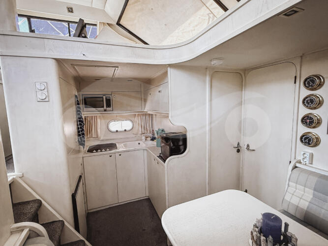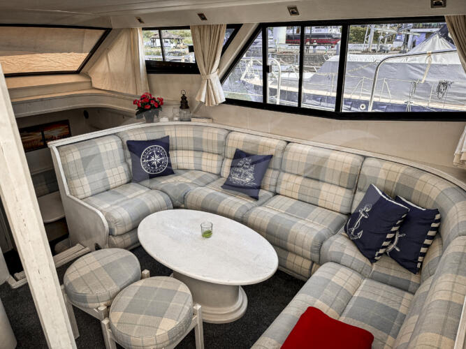 Zum Verkauf steht ein gepflegtes und geräumiges Motorboot „WEMONA II“, ideal für ausgedehnte Törns oder als schwimmendes Feriendomizil!