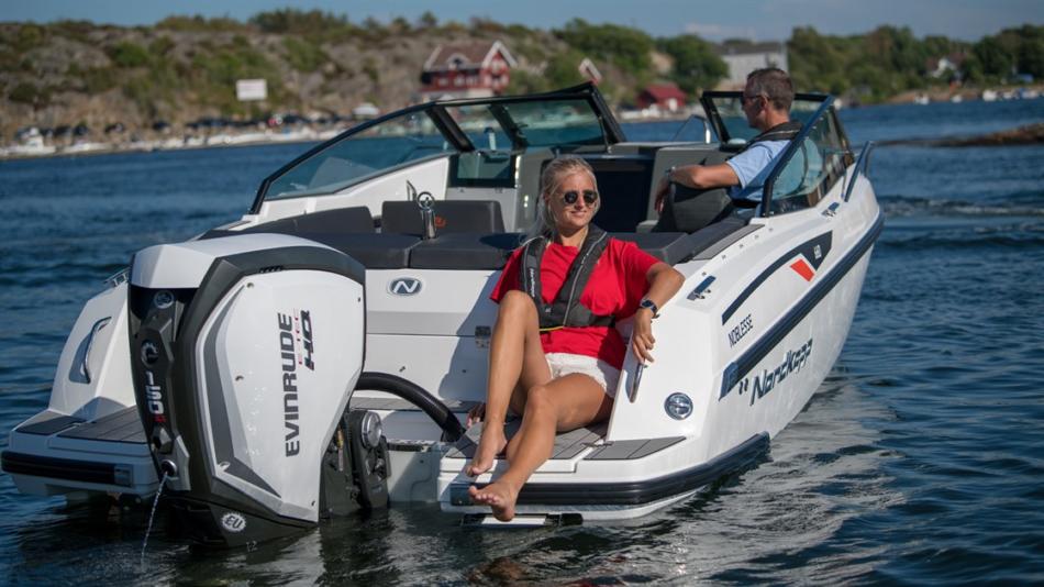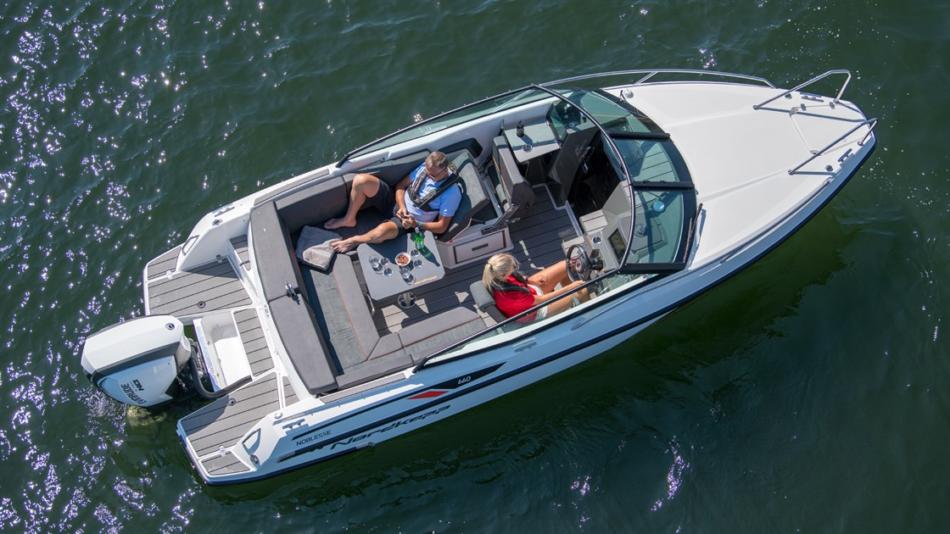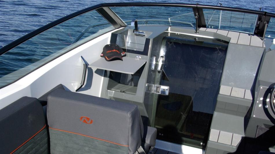 Angetrieben wird die Nordkapp K6 von einem 200 PS Motor der neuesten Generation aus dem Hause Mercury. 3,6 Liter Hubraum und V 6, lassen das Boot mit 40 Knoten im Flüsterton übers Meer gleiten.