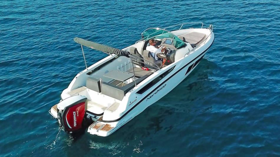 Exzellenter Boot Charter in Kroatien mit der neuen Nordkapp K8 Enduro des Norwegischen Edel-Bootsherstellers Nordkapp ist ein exklusives, luxuriöses Sportboot, das aber auch für 6 Personen ausreichend Komfort und Platz bietet. Eine geräumige Schlupfkabine rundet das großzügige Raumangebot ab. Schon „von der Stange“ ist dieses Boot allerhöchste Klasse, doch aber damit nicht genug: Der TOP Bootsverleih und die Tuning Spezialisten by Kristijan Antic bedeutet höchsten Komfort für Charterkunden! Ein größeres XXL Bimini Verdeck (Sonnendach) und der neu entwickelte Evinrude G2 mit 300 PS, der von ANC auf 350 PS optimiert wurde, sind nur zwei der zahlreichen Modifikationen.