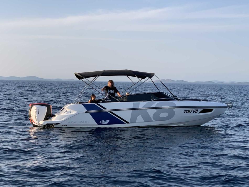Die erstklassige neue Nordkapp K8 Noblesse des Norwegischen Edel-Bootsherstellers Nordkapp ist ein exklusives, luxuriöses Motorboot, das auch für 8 Personen oder 2 Familien ausreichend Komfort und Platz bietet. Eine geräumige Schlupfkabine rundet das großzügige Raumangebot ab. Schon „von der Stange“ ist dieses Boot allerhöchste Klasse, doch damit nicht genug: Tuning by Kristijan Antic bedeutet höchsten Komfort für Charterkunden! Ein größeres Bimini Verdeck (Sonnendach) und der neu entwickelte Mercury mit 300 PS V8, der von ANC auf 350 PS optimiert wurde, sind nur zwei der zahlreichen Modifikationen.