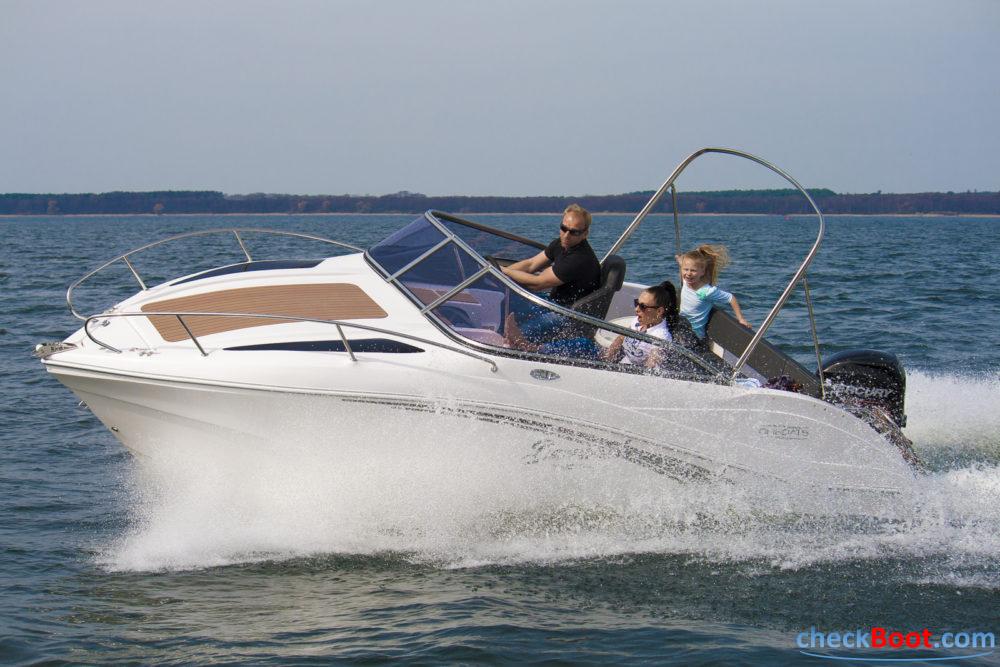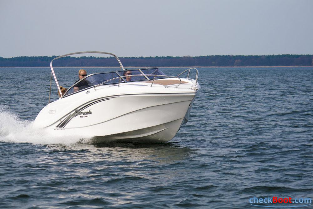 Das Modell Barracuda 585 des Herstellers Okiboats zeichnet sich durch das sportliches Design, einer extra Breite, durch die das Boot optimal im Wasser liegt, und hohe Bordwände aus. Diese hohen Bordwände geben ihren Kindern die Sicherheit beim Fahren, die sie brauchen. Die sportlichen Sitzpolster sind mit dem Bezugsstoff Silvertex bezogen, auf dem Sie auch bei längeren Fahrten nicht ins Schwitzen kommen.. Dieses Boot ist mit einem 80 bis 100 Ps starkem Motor optimal ausgestattet. Stellen Sie sich Ihr Boot für Sie optimal zusammen und lassen Sie sich von unserem Verkauf ein Komplettangebot machen.