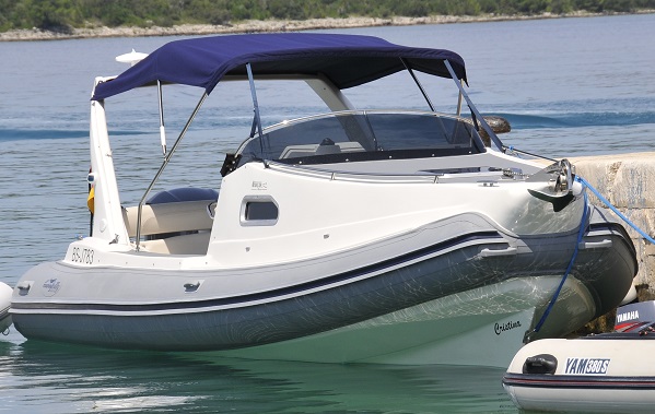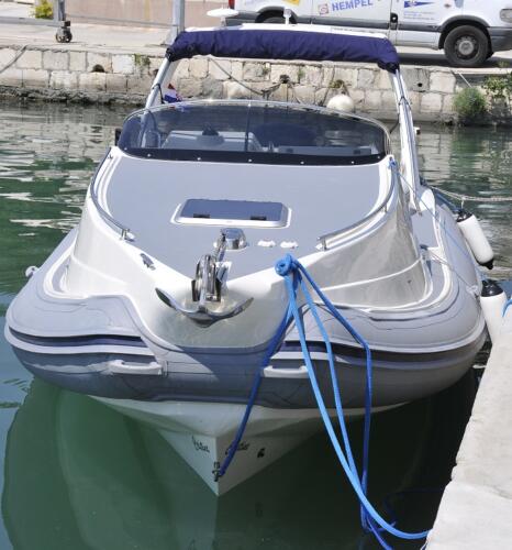 Schlauchboot Nuova Jolly Prince 23 open aus 2012 umgebaut 2014 mit Kabinenaufbau und Neuzertifizierung von Novacarmarine, Cecina, Toscana, ideal für Nautik-Camping.