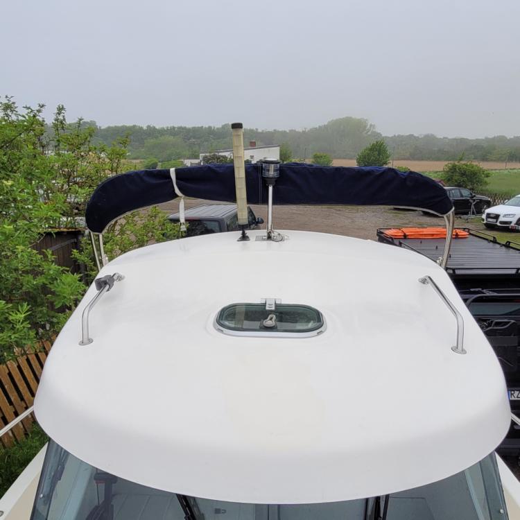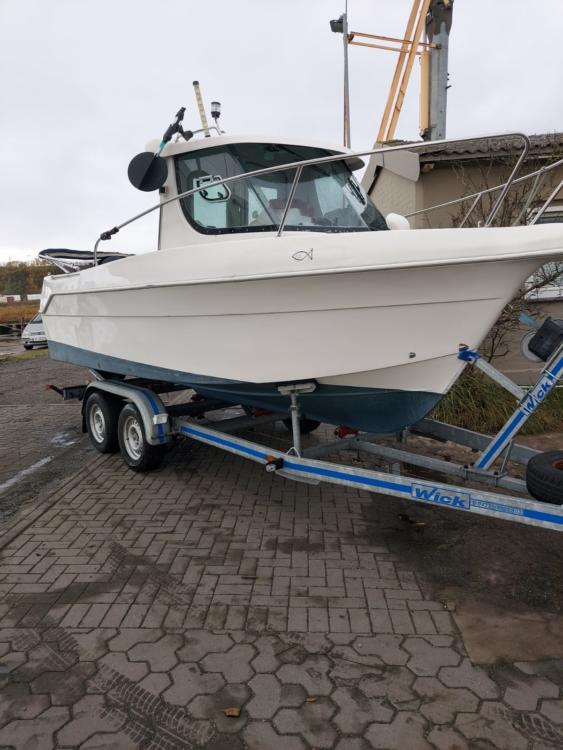 zu angeln. Auf dem Dach gibt es einen Radarreflektor, die Hupe müsste erneuert werden. Das Boot hat keine Osmose. Wir verkaufen privat, weil wir uns vergrößert haben. Gerne können wir den Motor starten oder bei Zahlung von 150€ auch eine Probefahrt machen, was bei Kauf wieder abgezogen wird.