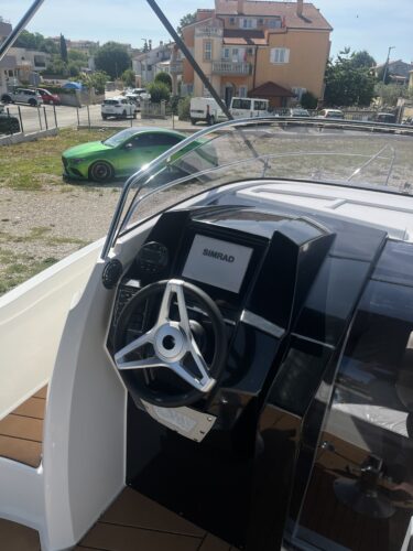 Fotografije služe samo u ilustrativne svrhe i prikazuju dodatnu opremu. Standardna oprema uključuje: bijeli trup, vjetrobransko staklo, spremište za sidro, četiri bloka za sidro, bočne ručke, cijevi od nehrđajućeg čelika za odvod vode, kormilarsko sjedalo (Fotelja), ljestve za kupanje, tapecirana sjedala, madrace u kokpitu, pramčane gume, ukrase za gume od nehrđajućeg čelika i krmenu klupu.