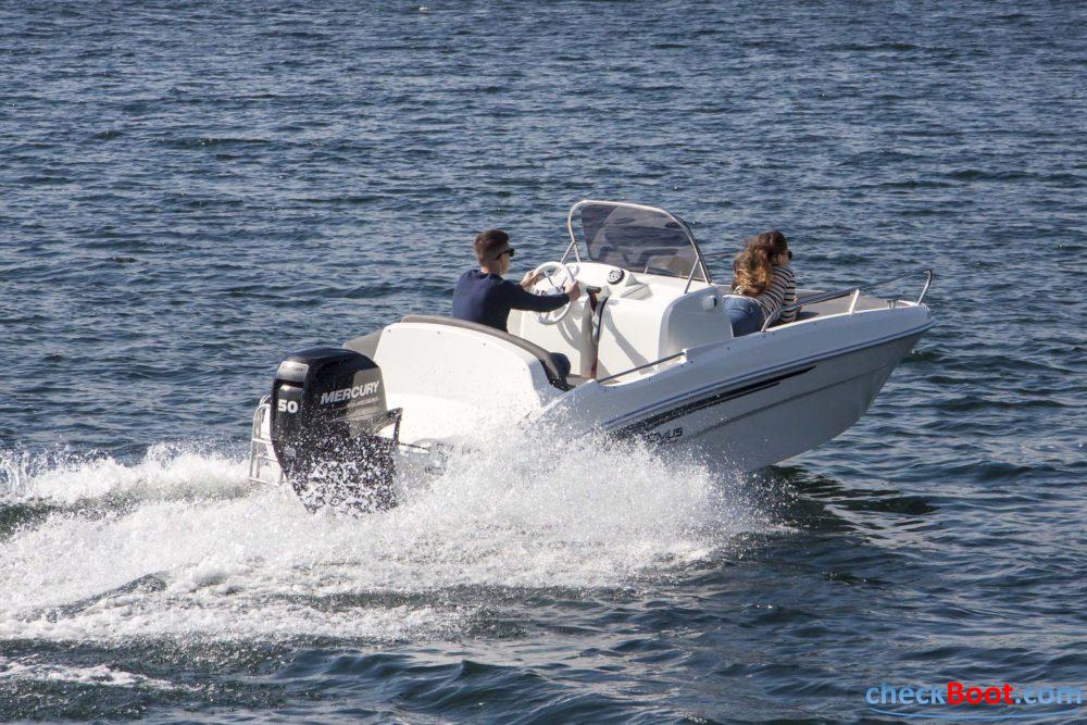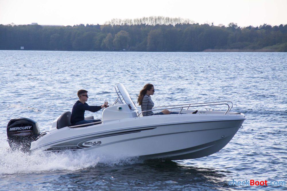 Ein absolut schickes Design gepaart mit Raffinessen aus langen Erfahrungen. Wer ein kleines handliches und offenes Boot sucht, kommt am „Remus 450“ nicht vorbei. Unglaublich viel Stauraum, eine große Sonnenliege auf dem Bug und ein zentrierter Fahrerstand runden das ganze positiv ab. Selbst schon mit 15 PS fährt sich das Boot absolut sicher und doch sehr sportlich. Mit der Möglichkeit, die verschiedensten Farben zu wählen, ob Rumpf oder Polster, kann man seine eigenen Akzente setzen.