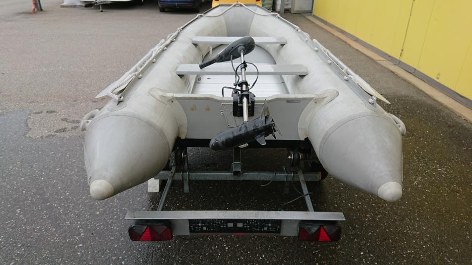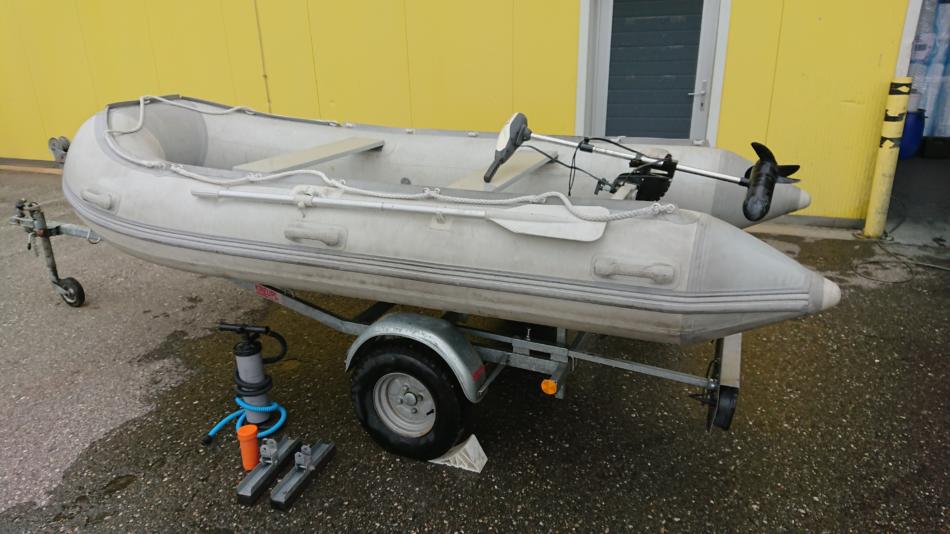 Das Schlauchboot ist 3.6m lang und 1.7m Breit, aufrüstbar bis 20PS. Das Boot war nur im Süßwasser im Einsatz (Donau, div. Seen). Der Motor funktioniert, Batterie ist keine dabei. Der Hänger hat noch das Pickerl bis 11/2022. Verhandlungsbasis € 1.200