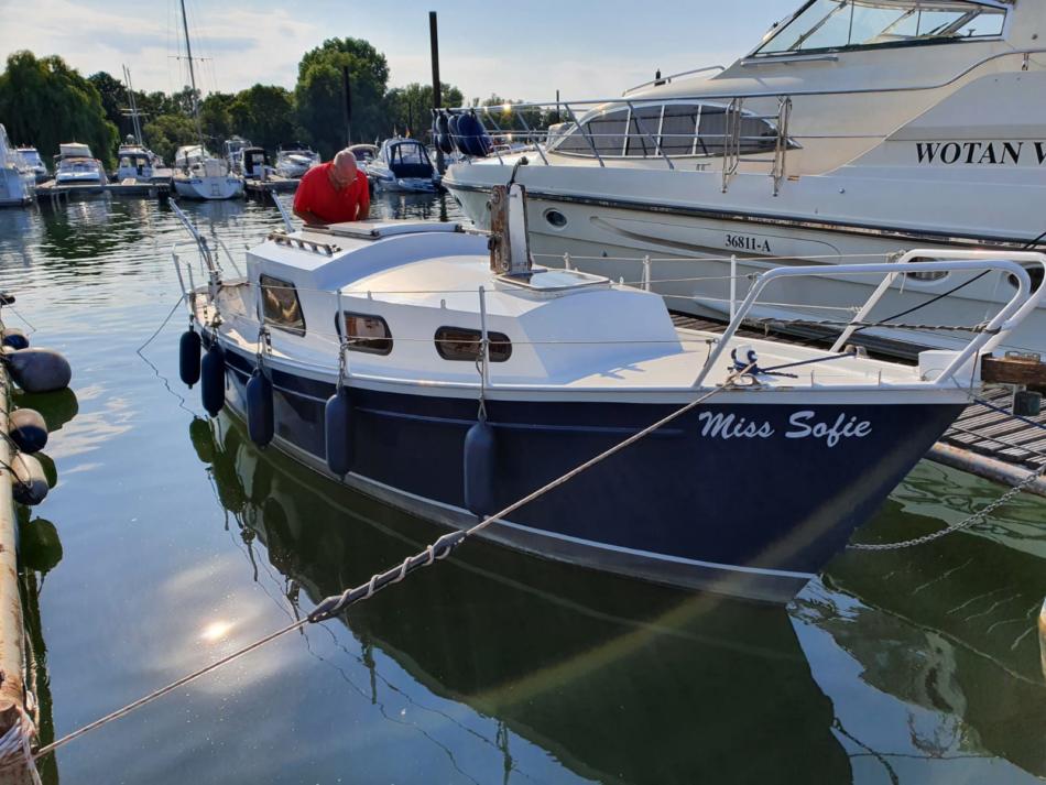 Unsere „Miss Sofie“ wurde letztes Jahr angeschafft, und liegt aktuell in Naarden bei Amsterdam im Wasser. Derzeit und für den Winter unter einer sehr stabilen Plane, und mit eingeschalteter Heizung zur Frostsicherung und Luftentfeuchter. Es geht ihr prima.