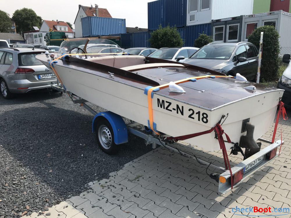 Ich biete hier schweren Herzens mein T4 Boot zum Verkauf an !.. das Boot ist eines von wenigen die noch existieren !..ein absoluter Klassiker im Look der 60er der Rumpf ist aus GFK und hat keine Weichen stellen .Das Deck ist Sperrholz und teils aus massivem Mahagoni die Scheiben und Polster wurden 2016 erneuert !Einzelanfertigung ! Instrumente wurden ebenfalls erneuert !..alte noch vorhanden . Angetrieben wird das Boot über starre Welle von einem 3zylinder Wartburg Motor der ohne Probleme startet und läuft . Eine zweite Schraube gibt es dazu. Das Boot hat eine Vorbereitung zur Montage eines Lewo 20 Wendegetriebes, was ich ursprünglich verbauen wollte !..habe dazu aber nie Zeit gehabt . Edelstahltank im Bug 50l Einzelanfertigung.Einhebelschaltung von Morse . Das Boot ist mit einem fishfinder ausgerüstet. Das Boot ist 5,20m lang und 1,9 m breit zugelassen für 4-5 Personen.das Boot kommt bei ca 15 km/h in Gleitfahrt und erreicht ca 40km/h. Tube fahren also gar kein Problem. Das Boot ist ein absoluter Hingucker und man ist die Attraktion an jedem See und Fluss! Das Boot wird mit Trailer verkauft sowie mit 2Fendern und Leinen . Ich verkaufe das Boot weil wir uns vergrößern wollen und keinen Platz für zwei haben . Das Boot wird privat und auf Grund seines Alters unter Ausschluss von Garantie und Gewehrleistung verkauft !.. und ist vom Umtausch und Rückgabe ausgeschlossen …ach so,… Baujahr ist 1973. Bootstrailer aus 2017 und hat heute neu tüv bekommen…das lewo Getriebe gibt es natürlich dazu