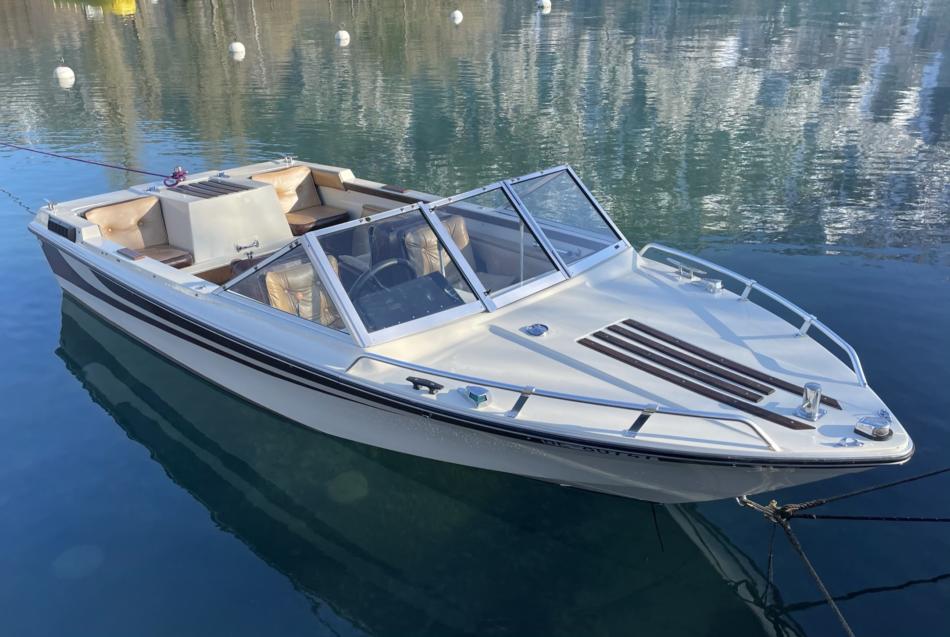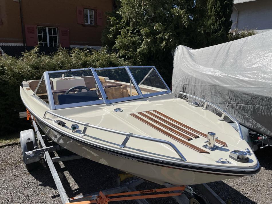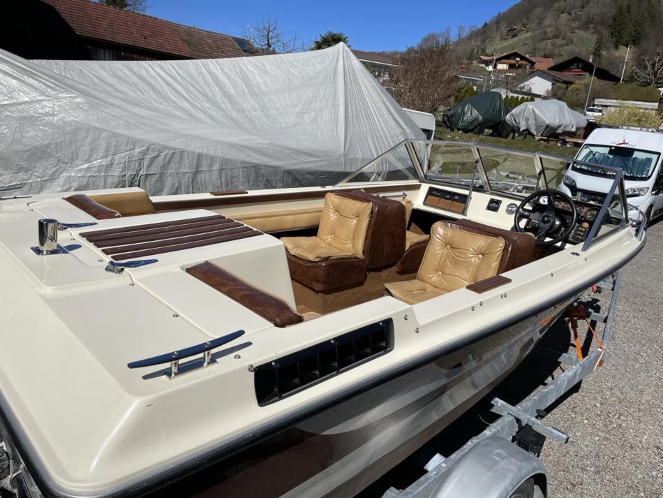 Motorboot Starcraft American 16, Länge 500, Breite 195 mit OMC Motor und Z-Antrieb 88kW (120PS). Letzter Abgastest am 31.03.2021. Das Boot ist nicht eingelöst und wird ab Platz ohne Trailer verkauft. Inklusive Klappdach und Persenning von 2018. Das Motorboot hat 460 Betriebsstunden und ist Jahrgang 1978. Als Zubehör gibt es gratis ein Ersatzgetriebe mit zwei zusätzlich Propeller dazu.
