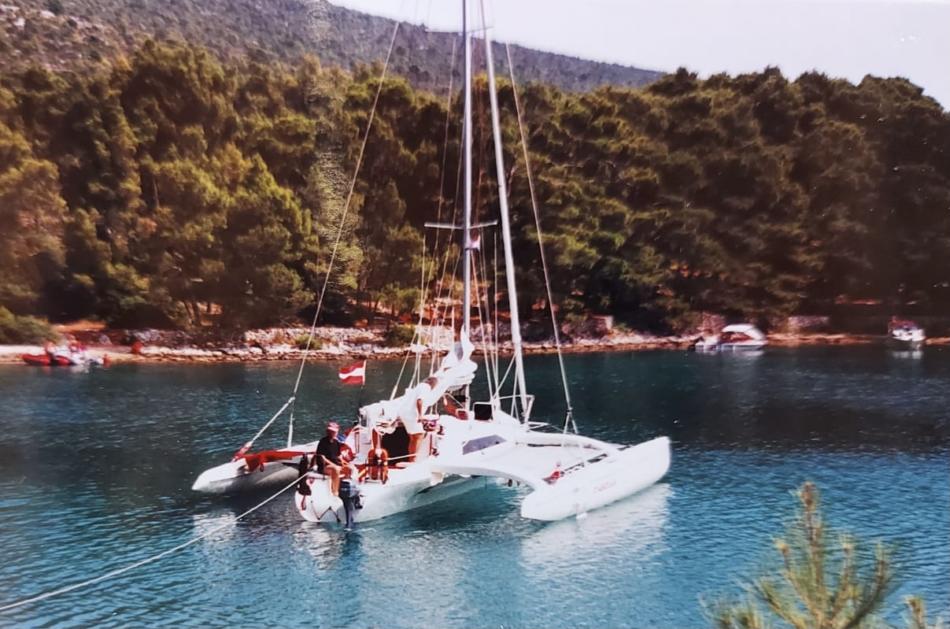 Familienerbstück: Segelyacht Trimaran Corsair F-31AC – Achtercockpit mit diversem Zubehör (2 x Motoren, Trailer, Spinnaker- und Gennaker-Segel, Beiboot, etc.)