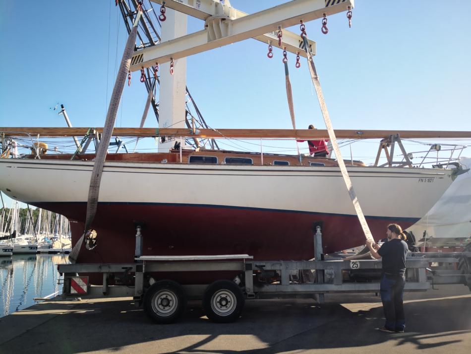 Der GFK Rumpf ist abgesehen von ein paar Kratzern in einem guten Zustand. Osmose war im Winterlager nach Aussage der Werft nicht zu erkennen. Das Unterwasserschiff wurde geschliffen und ein neues Antifouling aufgebracht.