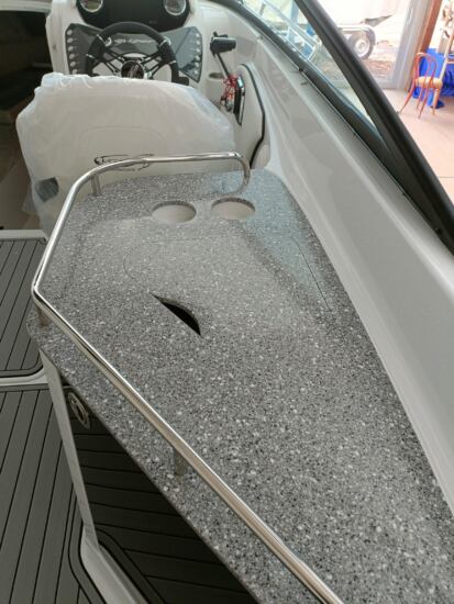 Serienmäßig: Cockpitplane, Corian Wetbar, Porta Potti, Cockpittisch mit Seitenfußmontage, Radio, Klampen mittschiffs