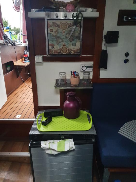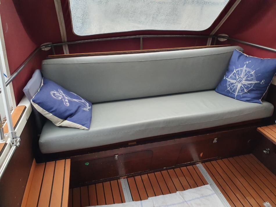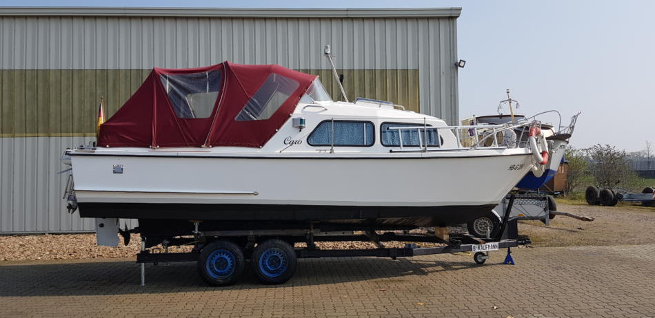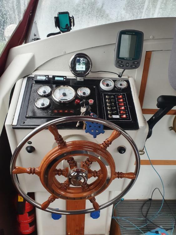 Ich biete hier meine Waterland 700 wegen Vergrößerung zum Verkauf an. Boot wurde 2017/2018 komplett umgebaut Das Boot ist 7,0m lang und 2,5m breit. Motorisiert ist es mit einem sparsamen, ca. 3 Liter/h, 37 Ps Bladt Diesel von 2015. Gelaufen hat er 530 Stunden. Öl, Ölfilter wurden jedes Jahr erneuert. Dieselfilter dieses Jahr. Desweiteren wurden die Ventile dieses Jahr eingestellt. Getriebe, hydraulisch, wartungsfreie Welle und Propeller auch von2015. Hydraulische Lenkung von Vetus auch in 2015 neu. Es hat 2 Batterien a 120 ah für den Verbrauch und eine 74 ah zum Starten. Getrennt über eine Diode. Ladegerät ist auch vorhanden und fest verbaut. Das Boot wird über Welle angetrieben und hat eine Reisegeschwindigkeit von ca. 12 km/h. Dieseltank hat 70 Liter, Brauchwasser 40 Liter. Es verfügt über eine Seetoilette, Kühlschrank, 230V/12V und Gas und einen 2 Flammenherd. Außerdem hat es 230V, reiner Sinus, über Wandler an Bord. Kühlschrank, Polster und Bodenbelag aus 2018. Außerdem sind 2 USB und 3 12V Steckdosen verbaut.Impeller wurde letztes Jahr erneuert und dieses Jahr hat es neue Gardinen bekommen. Schlafmöglichkeit für 2 Personen in der Kajüte. Eine Person in der Spitze die 2. Person auf der umgebauten Sitzecke. Nicht unbedingt für sehr große Personen geeignet. Boot ist dicht und riecht nicht feucht oder muffig. Badeleiter vorhanden. Letzten Winter wurde das komplette Unterwasserschiff auf Osmose überprüft und danach mit 6 Lagen Epoxyprimer geschützt. Deweiteren wurde die komplette Elektrik überholt und teilweise erneuert. Dabei ist ein 4 PS Evinrude Notmotor und ein Hafentrailer, kein Straßentrailer. Das Boot liegt noch bis Ende September im Wasser . Probefahrt also noch möglich. Weitere Bilder folgen. Verkauf erfolgt ohne jede Gewährleistung und ohne Rücknahme. Preisverhandlung nach Probefahrt. Preis ist VB