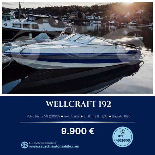 Zu verkaufen: Wellcraft 192 mit Volvo V8 & Honda 15PS – inklusive Trailer Erleben Sie pure Freiheit auf dem Wasser, mit diesem hervorragend gepflegten Wellcraft Bayliner Motorboot, das Leistung, Stil und Zuverlässigkeit in sich vereint. Technische Highlights