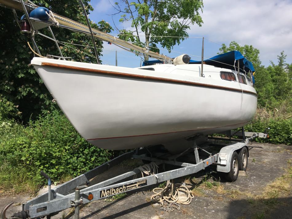 Den letzten Törn habe ich 2013 gemacht, danach wurde es nur als „schwimmender Campingwagen“ benutzt. Das Großsegel wurde 2015 neu gemacht und vergrößert, ist also nie gefahren. Sturmfock habe ich auch noch…. Das Schiffchen ist immer in der Ostsee gefahren, hat wunderschöne Ecken der dänischen Südsee gesehen. Ideal für ruhiges Familiensegeln – aber auch bei nem 6er mit zweitem Reff ließ es sich noch gut beherrschen. Aufgrund der Größe und des geringen Tiefgangs habe ich in jedem Hafen noch einen Platz gefunden – und sei es an einem Treidelsteg.